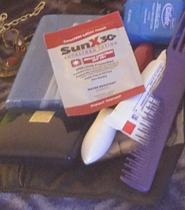 Toiletries - comb, toothbrush, toothpaste, dental floss, sunscreen, qtips, soap, sunscreen